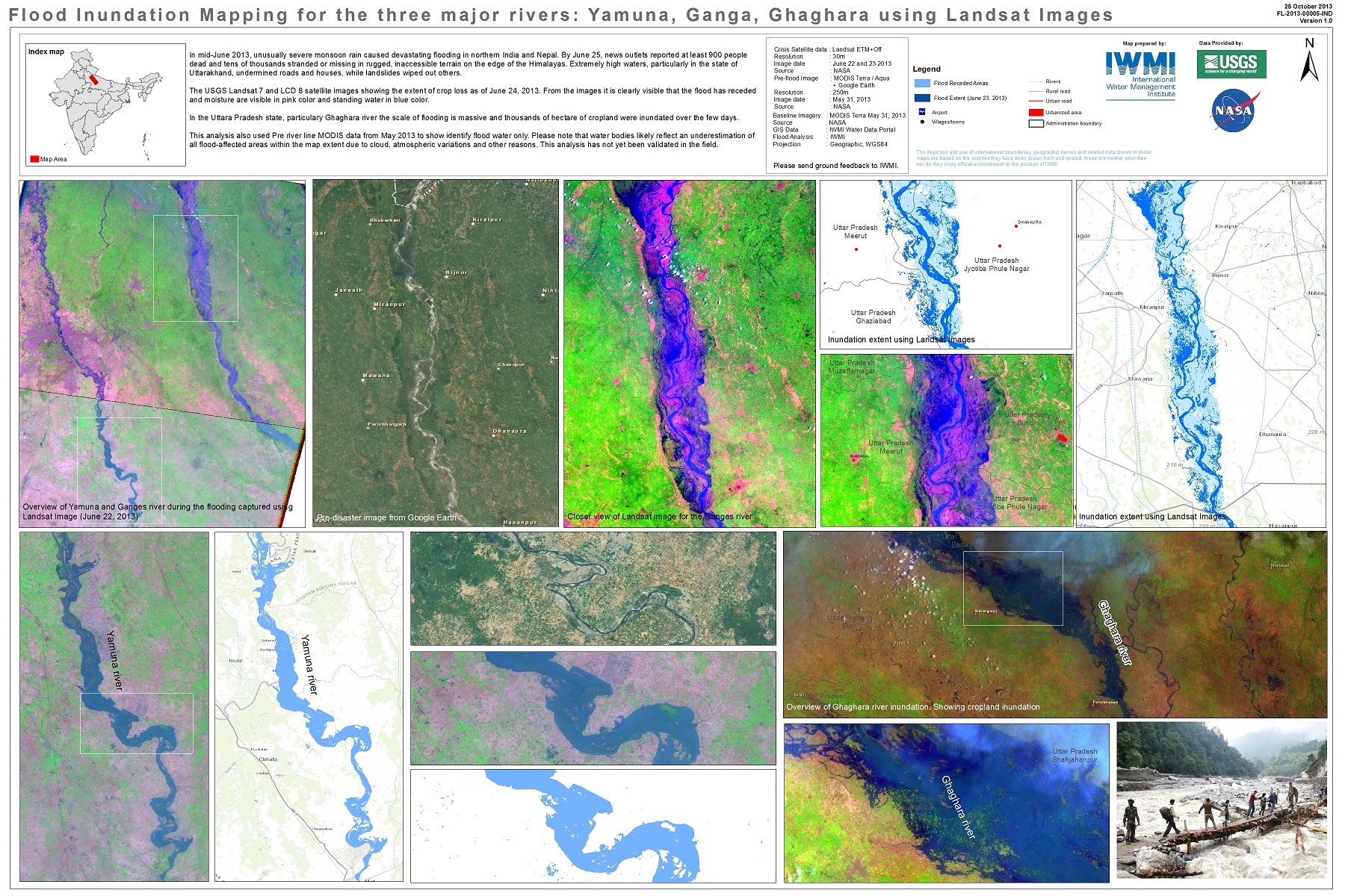 UN-SPIDER's partner IWMI (International Water Management Institute) produced flood maps for Yamuna, Ghaghara and Ganga rivers and for the states of Uttarakhand and Uttara Pradesh using MODIS data from NASA Terra and Aqua satellites.