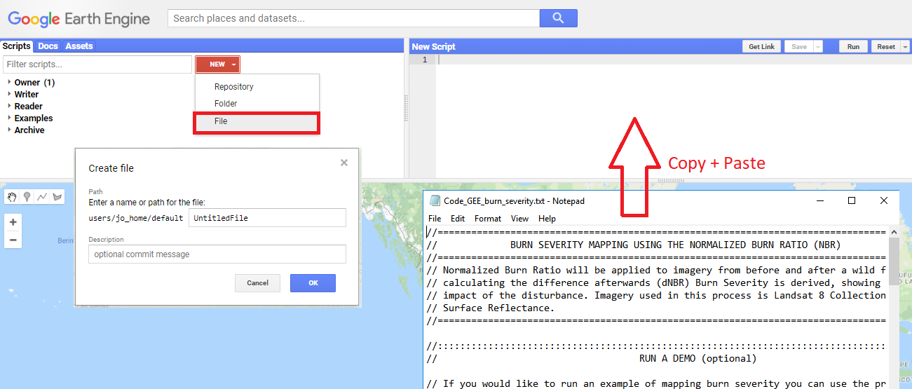 Figure 1: To import the script manually, create a new file and paste the code.