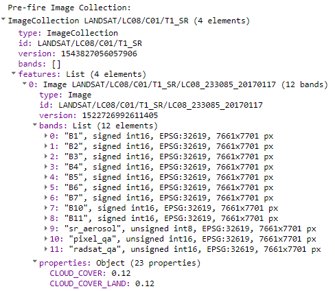 One major advantage of GEE is the accessibility of global time series data in the form of ImageCollections. These are already loaded on Google's servers and do not require much pre-processing. ImageCollections have an ID (e.g. LANDSAT/LC08/C01/T1_SR) and contain a certain type or quality of data. Reading from the ID above, this collection contains Landsat 8 surface reflectance (SR) data from collection one (C01), tier one (T1). ImageCollections can be reduced by applying filters on the region, the date of acquisition or other metadata-filters (e.g. cloud-cover). The GEE code provided in this Recommended Practice prints filtered ImageCollections to the console where they can be explored manually.