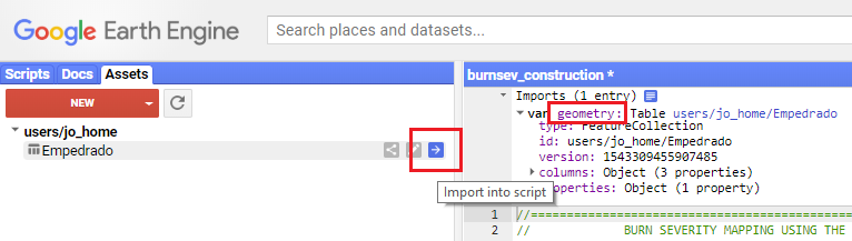 Figure 3: Import the table after uploading and rename it to 'geometry'.