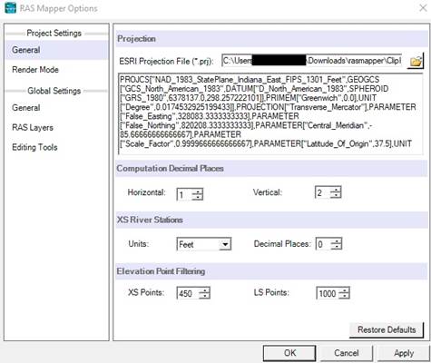 RAS Mapper is a dedicated interface for visualization and processing of geospatial data. Before geometry generation, it is necessary to create the basic conditions to develop geospatial features. These include specifying a coordinate system. The coordinate system defined by the projection file needs to be a projected coordinate system.