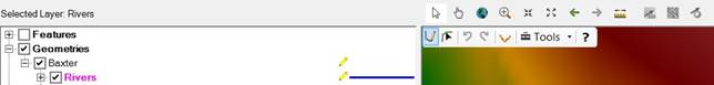 A toolbar will appear and its tools are used to digitize river features. The feature being edited is marked with a pencil symbol.