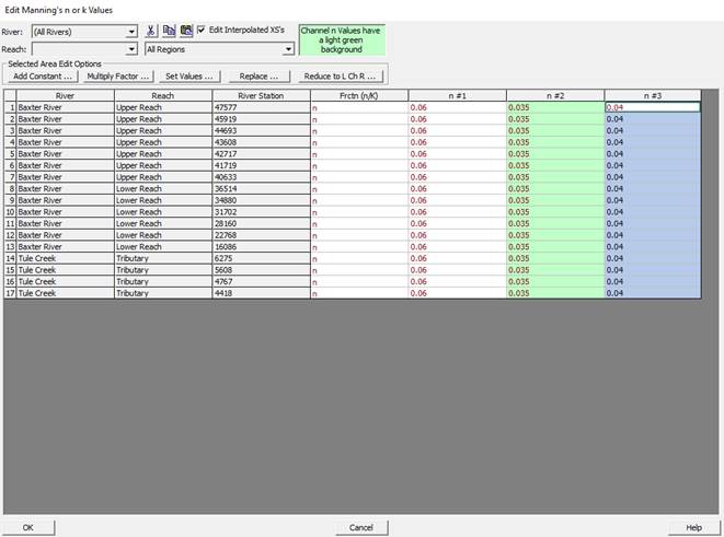 Select Tables→Manning’s n or k values (Horizontally varied)…