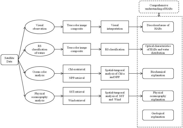 Figura 9. Un marco sintetizado de detección remota por satélite para detectar HAB. Imagen: Shen, Xu, and Guo 2012