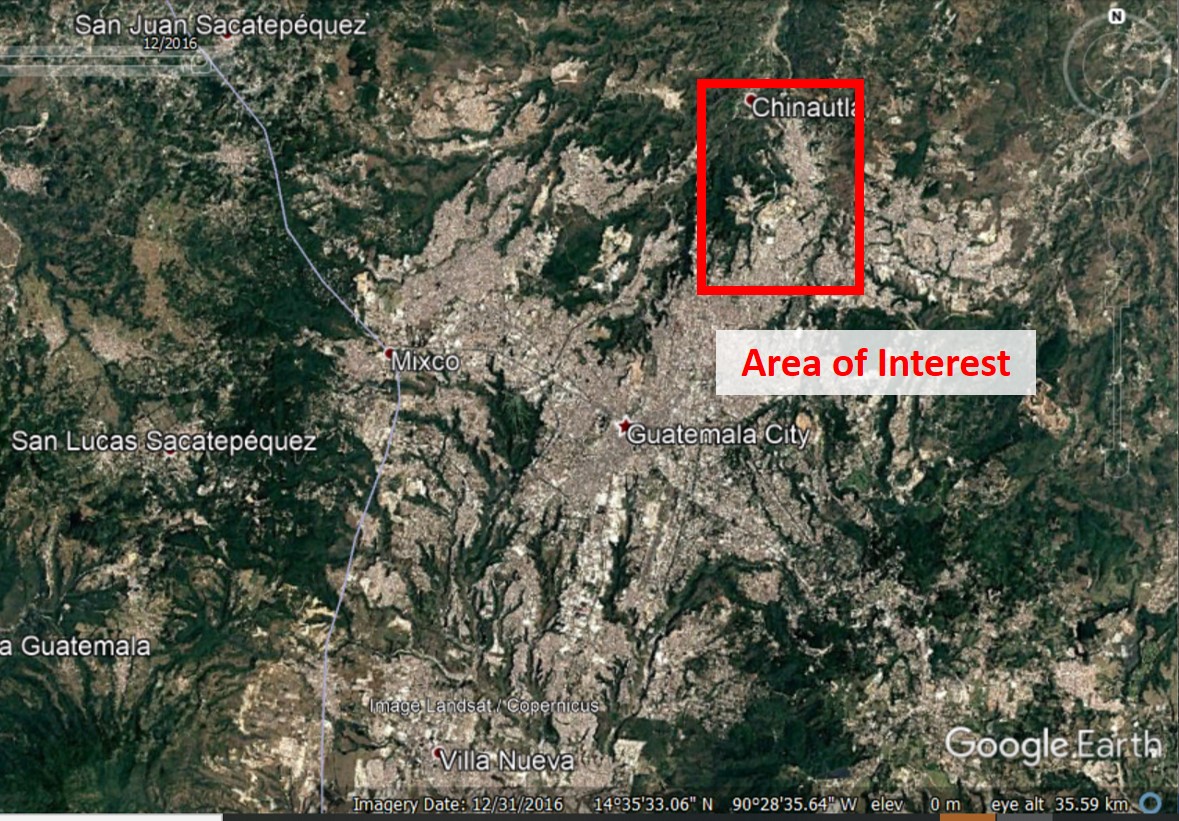 Guatemala City is surrounded by steep ravines which developed over millions of years due to erosion of the surface triggered by intense rainfall as well as due to landslides triggered by intense rainfall and earthquakes. Chinautla is one of the neighbouring municipal districts of the Greater Metropolitan Area of Guatemala City. During the 1976 earthquake, this and other municipal districts experienced many landslides triggered by the earthquake.