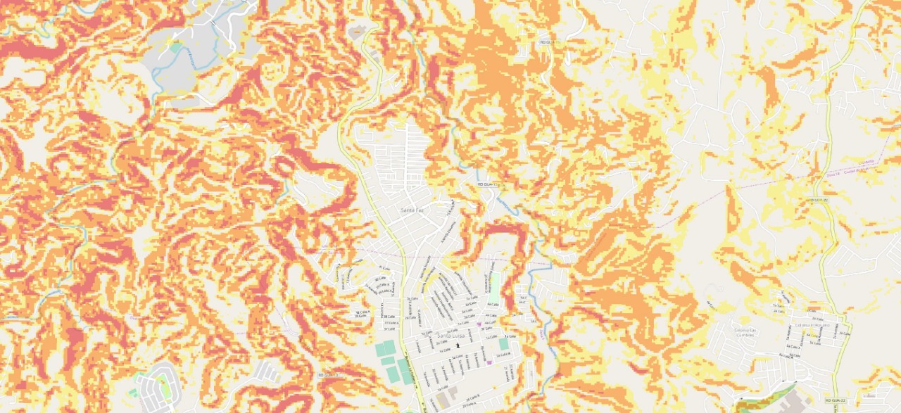 At the request of UN-SPIDER, the Geographic Information Systems Department of the Executive Secretariat of Guatemala’s National Coordinating Agency for Disaster Reduction (SE-CONRED) modelled the landslide hazard in the region of Chinautla using two digital elevation models (DEM):