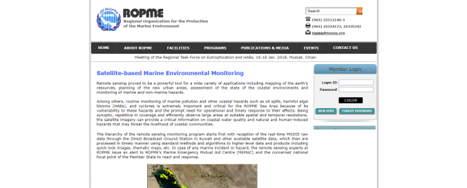| Space-based Information: | The ROPME has initiated a regional program and special remote sensing unit for routine monitoring of marine and coastal environments in its regional marine area (the Gulf, Sea of Oman and Arabian Sea), which is conventionally, known as ROPME Sea Area. This program relies essentially on processing and utilization of real-time and near-real time satellite data from NASA’s MODIS sensor that is being received through the MODIS Direct Broadcast Receiving Station. This station has been installed at ROPME Secretariat in Al-Jabriya, Kuwait in early 2003 and still operative since that data. The station is being operated and managed by the experts of the Remote Sensing Unit (RSU) and routinely receives satellite data only from MODIS sensor onboard Terra and Aqua satellites. The RSU also provides a guidance and advice to the national focal points and other concerned authorities in case they need further information on status of the marine environment in their territorial waters or regional seas. |