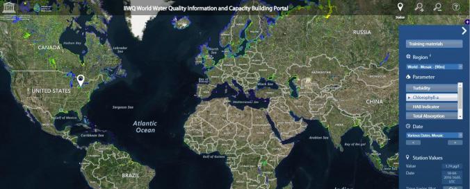 | Space-based Information: | The World Water Quality Information and Capacity Building Portal (IIWQ) is a webmap that illustrates data on turbidity, chlorophyll-a, total absorption as well as the EOMAP specific harmful algal bloom indicator (HAB indicator). Where access to in-situ data is available station values are presented. |