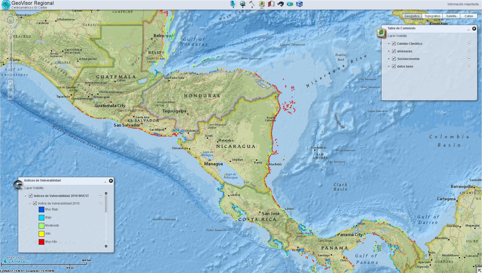 UN-SPIDER's Regional Support Office CATHALAC – The Water Center for the Humid Tropics of Latin America and the Caribbean –, elaborated a profile of the relative vulnerability of Central America's Caribbean and Pacific coasts to the hazards of storm-induced coastal erosion and storm surge. The analysis included the seven Central American countries (i.e. Belize, Guatemala, El Salvador, Honduras, Nicaragua, Costa Rica, and Panama) and was done to provide a reference level for decision-making regarding coastal planning.