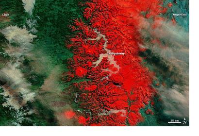 The Moderate Resolution Imaging Spectroradiometer (MODIS) on NASA’s Terra satellite captured images of the region around Lonquimay on July 22, 2011 (shown image), and July 8, 2011.