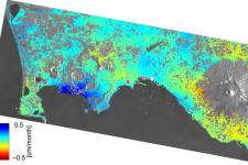 A study realised with radar imagery from the Sentinel-1A satellite over a large and active volcanic area near the city of Naples, the Phlegraean Fields, has shown that the ground has been rising by about 0.5 cm per month between October 2014 and March 2015.