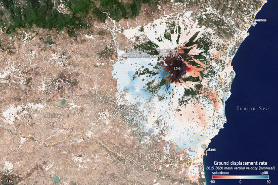 Title image: Etna’s uplift and subsidence (contains modified Copernicus Sentinel data (2015–2020), processed by EGMS/ESA); Link.
