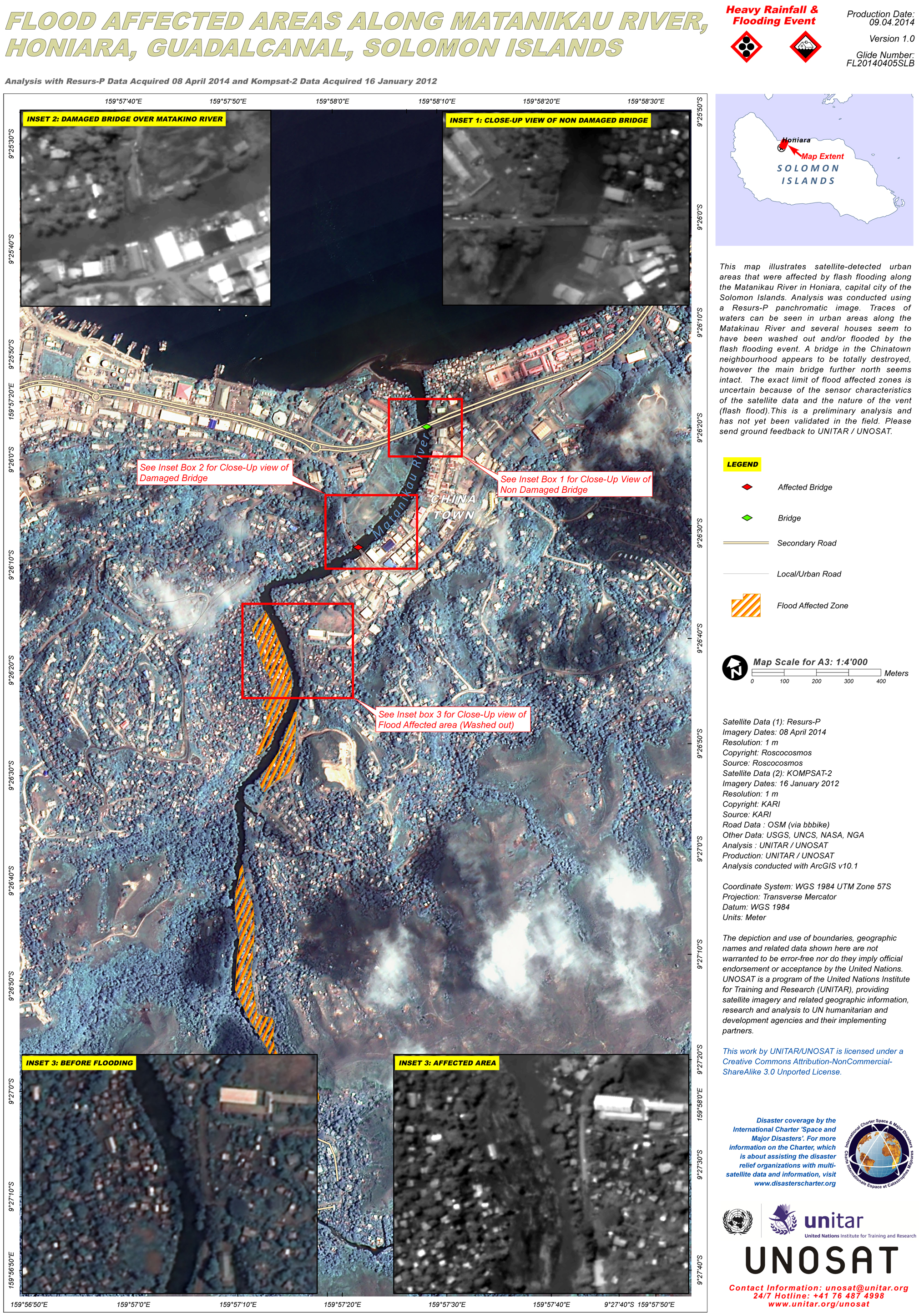 The International Charter: Space and Major Disaster was activated on 5 April by UNITAR/UNOSAT on behalf of UN ESCAP and UN OCHA in the Solomon Islands due to heavy rainfall which caused flash flooding.