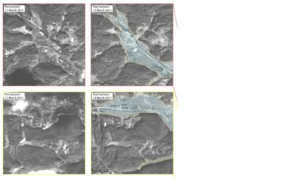 Pre- and post-quake imagery makes automation possible. A program could compare and contrast the two images much as in the NYT slider feature and could automatically calculate the devastation that way. Other research might enable the automatic detection of rubble, since debris has a random structure, as opposed to the regular orderly grid of the road and buildings in most towns and cities.