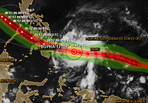 Based on a communication with the Office for Humanitarian Affairs (OCHA) Pacific Office, UNOOSA/UN-SPIDER today requested the activation of the International Charter "Space and Major Disasters" to assess the damage caused by Super Typhoon Bopha that hit the island nation Palau on early morning of 3 Dec 2012. The activation aims at assessing damage associated with the wind, the storm surge and heavy rains.